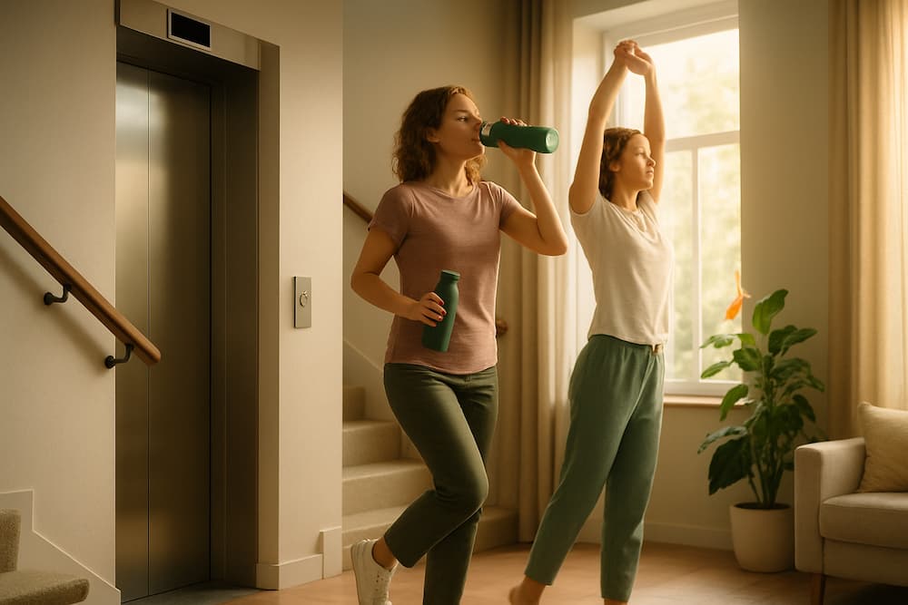 Exercise doesn’t have to mean an hour at the gym every day. Small activity swaps can be equally powerful. Taking the stairs instead of the elevator, parking farther from the store, or walking during phone calls are all ways to increase movement without significant time investment. Adding these micro-moments of activity throughout the day improves circulation, burns extra calories, and helps maintain mobility over time. It also reduces sedentary strain, which is a major contributor to fatigue, back pain, and other health issues.