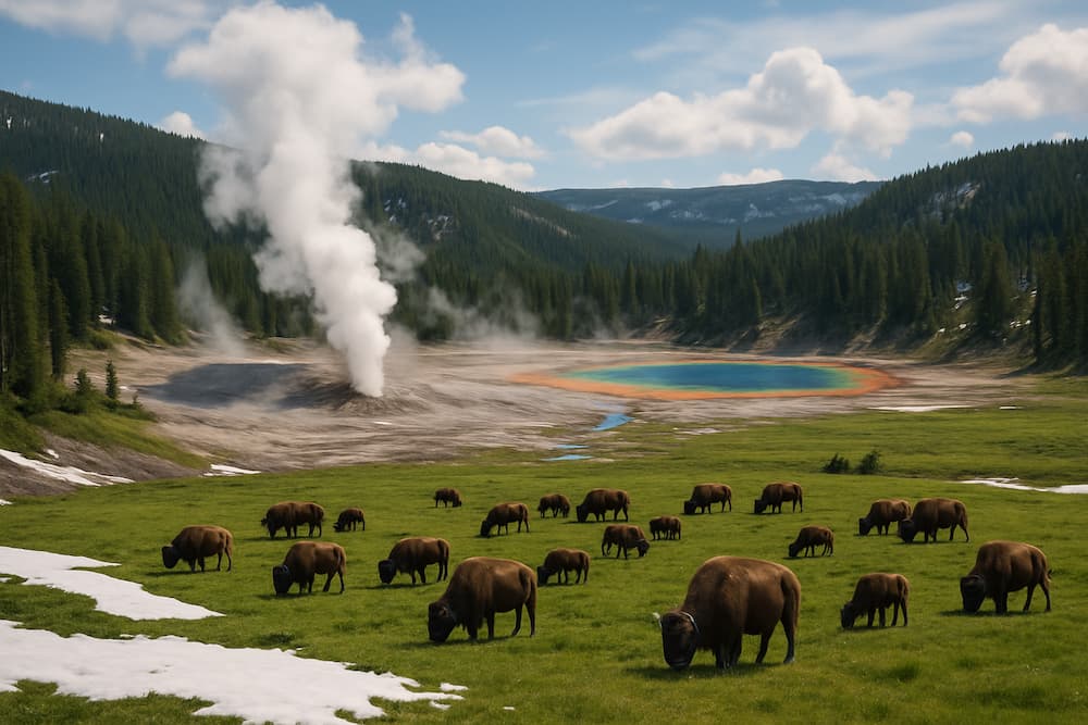 Yellowstone is America’s first national park, famous for its geysers, hot springs, and diverse wildlife. Visiting in spring allows you to witness the park waking up from winter. Snow may still linger in higher elevations, giving the landscape a dramatic contrast against the budding greenery. One of the highlights of a spring visit is wildlife spotting. Elk, bison, and bears begin to emerge, often seen grazing in the meadows. The Old Faithful geyser is a must-see, but don’t miss less famous geothermal features such as the colorful Grand Prismatic Spring. With fewer tourists compared to summer, hiking trails feel more peaceful, making it an ideal time for photographers and nature enthusiasts.